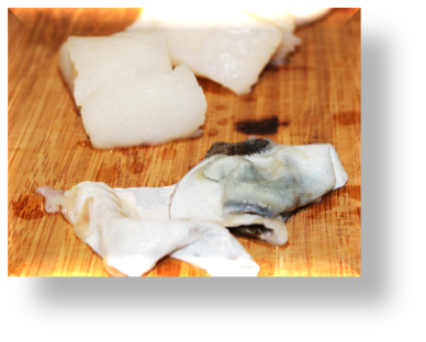 Retira la piel del bacalao y reserva el bacalao y la piel.