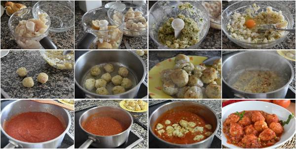 Elaboración de las albóndigas de bacalao en salsa de tomate: