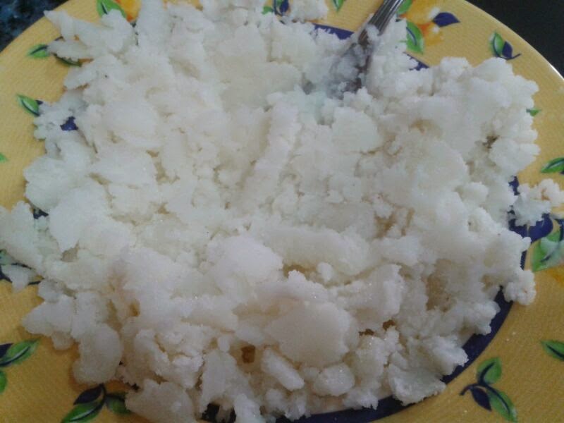 Freímos 3 dientes de ajo, las almendras y el pan "asentao". Hacemos un "majaíllo" añadiendo el azafrán.