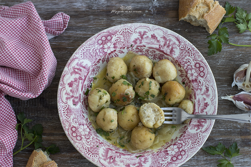 Seguimos con propuestas para Semana Santa, en esta ocasión un plato tradicional de nuestra gastronomía, como son las albóndigas de bacalao, He usado bacalao en salazón pero podemos usar bacalao ya desalado. Si lo usáis en salazón ya sabéis que tenemos que poner en agua, dependiendo del tamaño entre 48 o 24 horas, cambiando el agua cada ocho horas y dentro del frigorífico.