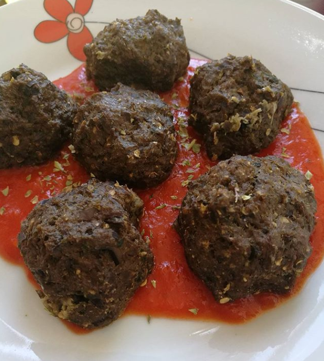 Ponemos todos los ingredientes en el vaso, y programa 30 minutos, 120ºC en velocidad 2. Una vez lista vierte sobre las albóndigas ya horneadas y decora con un poquito de orégano.