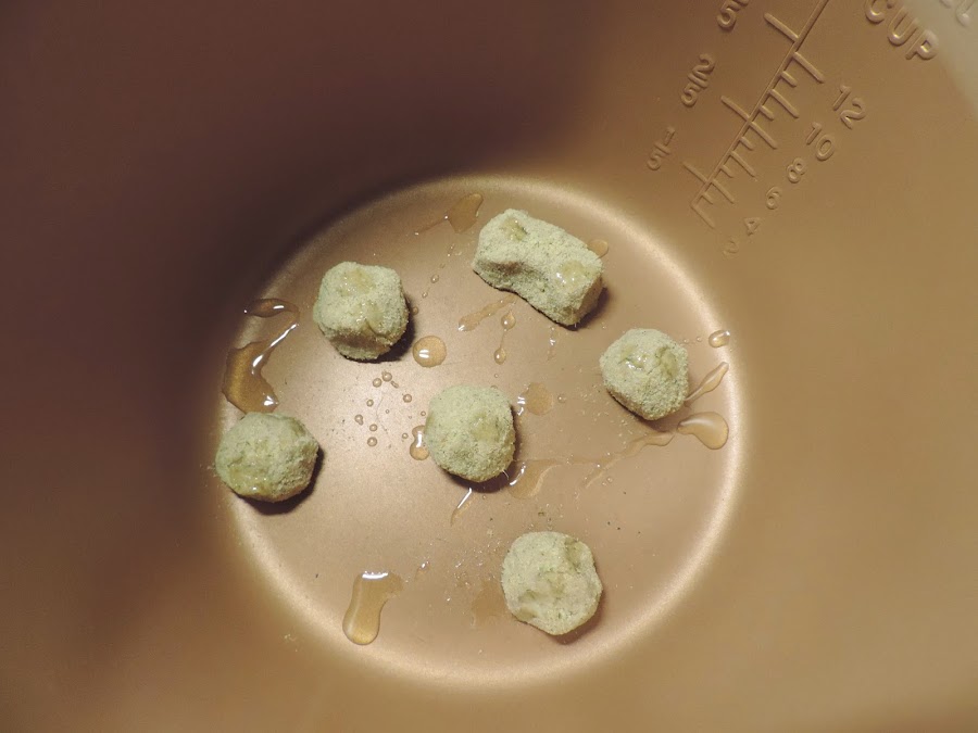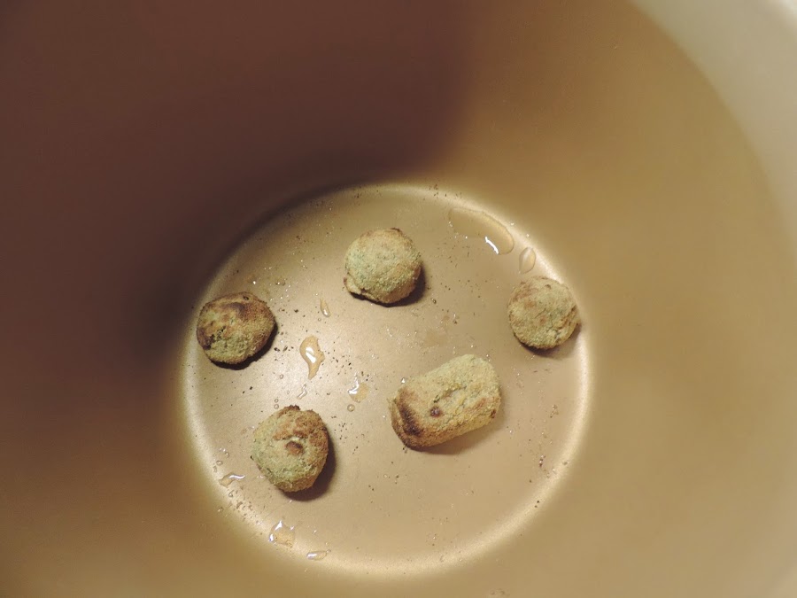 En esta foto hay pocas albóndigas en la cubeta, pero he puesto unas 15 y se han echo en ese tiempo.
