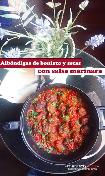 Estamos en temporada de boniatos (de octubre a marzo) y hay que darles una salida a la altura de su sabor. Este tubérculo cada vez está más extendido entre nuestras cocinas (bajo contenido calórico y aporta vitamina B y C, además de calcio o potasio) y ya no sólo en platos salados, se amolda a cualquier receta que tengas en mente. En mi caso ha sido "rehacer" las clásicas albóndigas con tomate en formato "vegeta". El resultado es esta maravilla que podéis contemplar. Puedes llamarle un trampantojo si quieres, yo lo llamo: recetón de otoño.