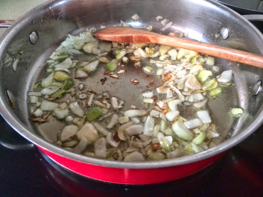 En una cazuela ponemos un chorrito de aceite y pochamos la cebolla picada.