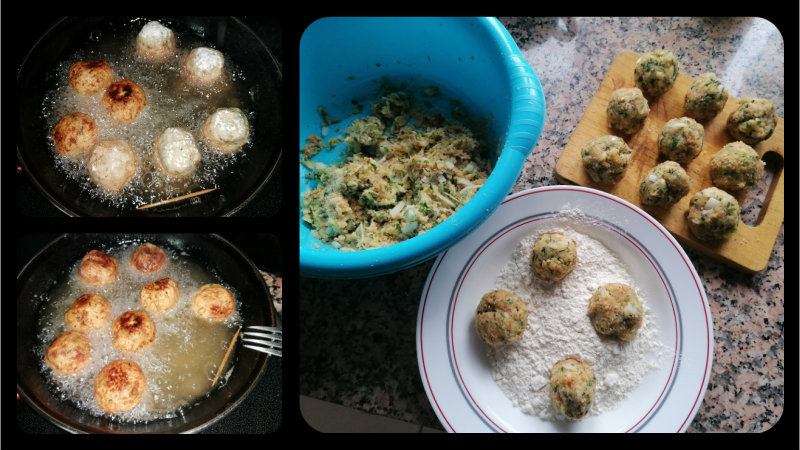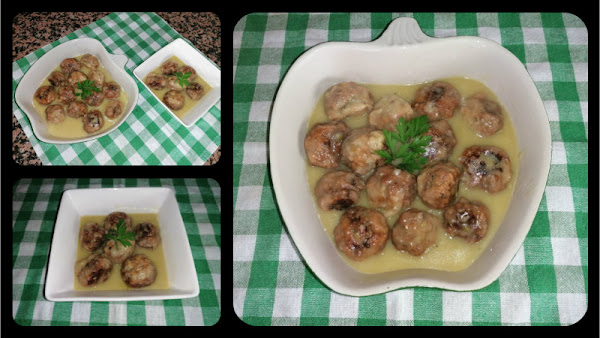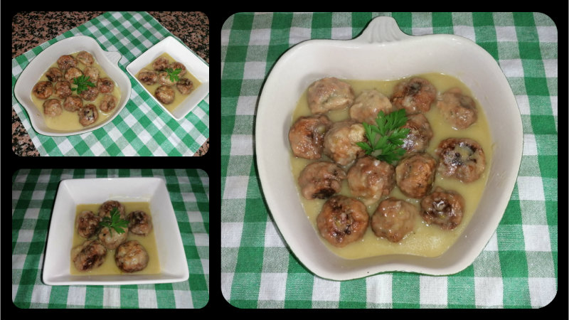 Vamos formando las albóndigas, si vemos que necesitamos más pan rallado se añade, según esté la masa, una vez formadas se pasan por harina y se van friendo. Acordaros de poner un palillo para que no se forme espuma al freír y el fuego ha de estar suave, se fríen por ambos lados e ir sacando para una cacerola.