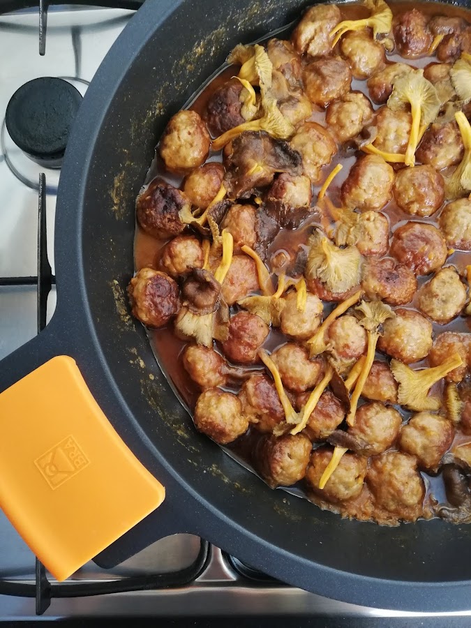 5. Ahora ponemos las albóndigas, los "camagrocs" y encima añadimos la salsa que acabamos de hacer. Dejamos a fuego medio/bajo durante al menos 30 minutos, para que la salsa se reduzca y espese un poquito.