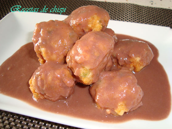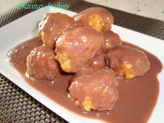 Hacemos las albondigas y pasamos por harina y freimos por ambos lados, a medida que las vamos sacando del aceite las pasamos a la salsa, calentar la salsa unos cinco minutos, si las queremos comer solamente fritas tambien esta buenisimas.