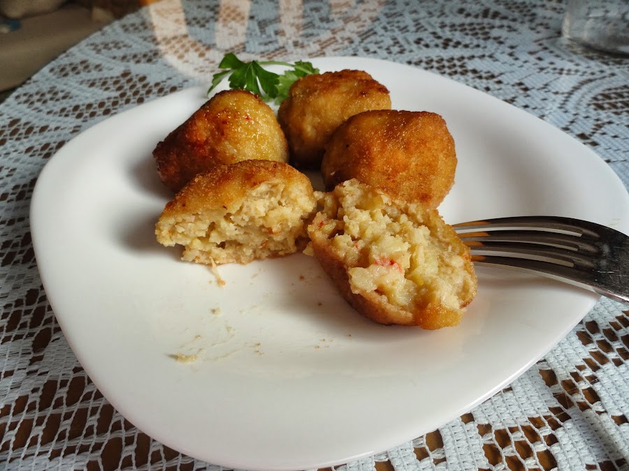Ya fuera del fuego le echo el huevo batido, y los polvos de puré de patata hasta conseguir un espesor manejable para formar las albóndigas.