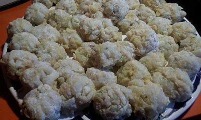 Tapa con papel film y deja reposar en el frigorífico alrededor de 1 hora. Saca y ve formando las albóndigas, rebózalas en harina.
