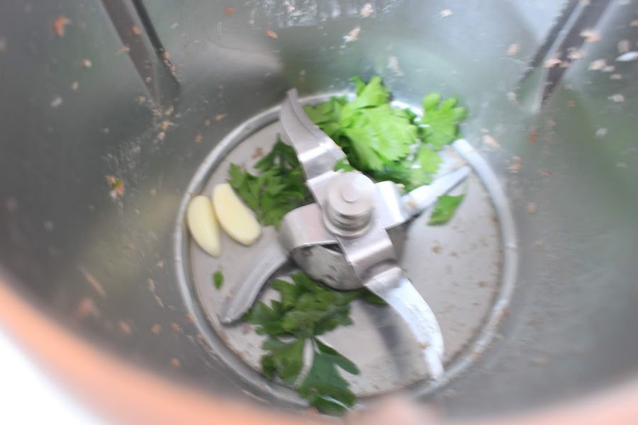Seguimos con el ajo, el perejil y el vino y picamos 10 segundos a velocidad 7.