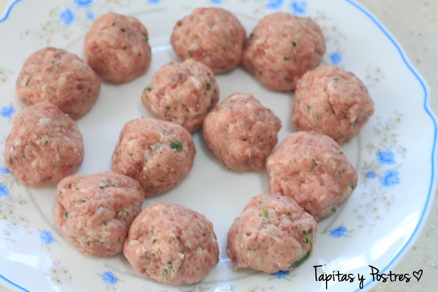 Estas albóndigas no llevan salsa, están pensadas mas bien como un picoteo, un entrante..algo para comer con las manos, cosa que a mi me encanta.