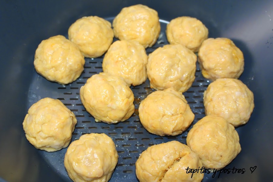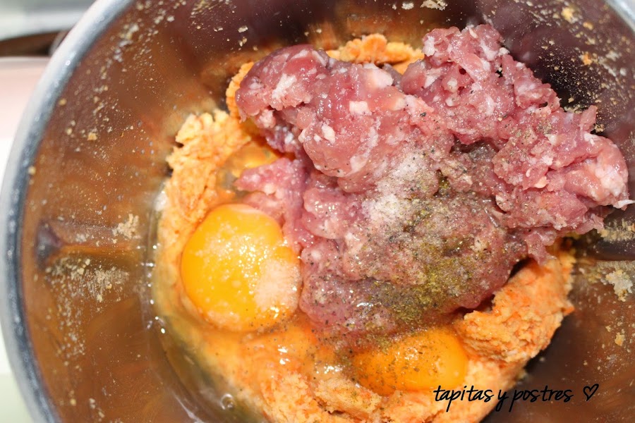 He variado la receta, yo he añadido carne picada también, para que tenga más consistencia de albóndigas. Además están hechas al varoma, así son más ligeras. Aunque creo que también las probaré fritas. En otra ocasión.
