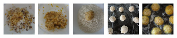 Tras este tiempo, tomamos porciones pequeñas de masa y hacemos bolas que pasamos por harina y freímos en abundante aceite caliente. Vamos retirando y reservando sobre papel absorbente.
