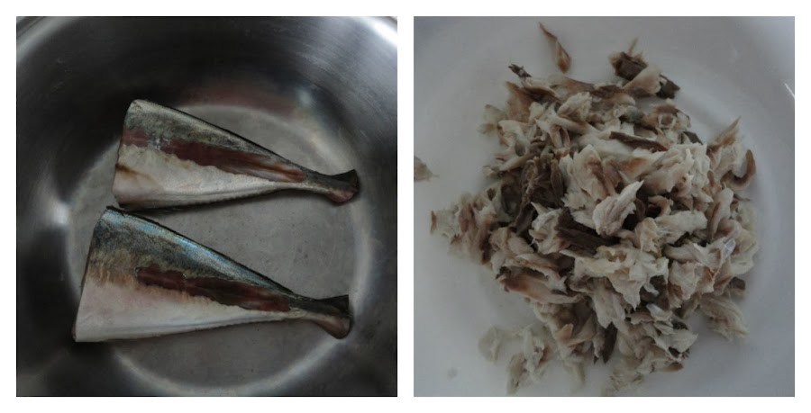 Comenzamos preparando el pescado, retiramos escamas y espinas y lo ponemos en una cazuela con agua; dejamos que hierva y lo retiramos del agua.