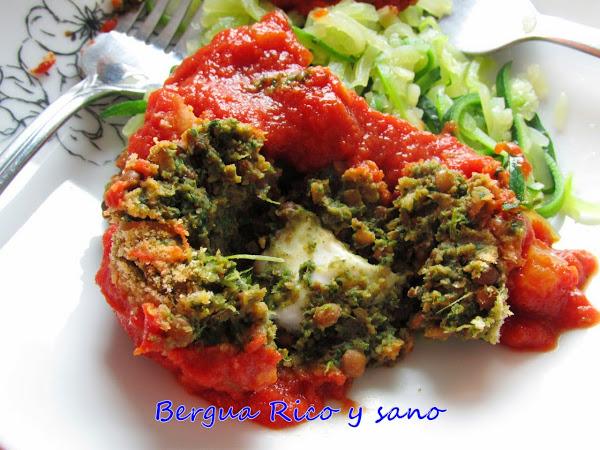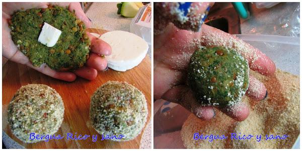 * Mirad el queso fundido en el centro de la albóndiga ;) Acordaos de tomar un cítrico (kiwi, naranja, mandarina...) después de comer para que vuestro cuerpo asimile el hierro de las lentejas =)