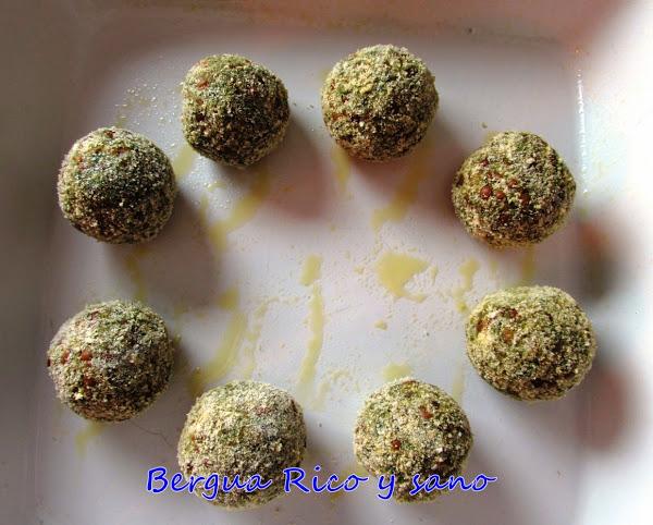 6. Entonces espolvoreamos con pan rallado para que el exterior de las albóndigas quede más firme.