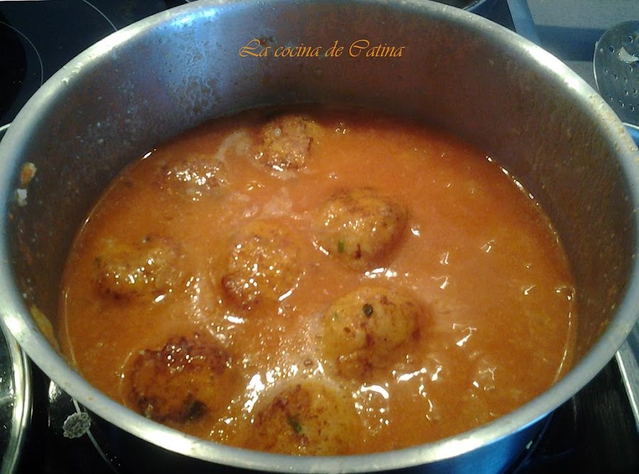 En una sartén con aceite de oliva, doramos las albóndigas a fuego medio y reservamos.
