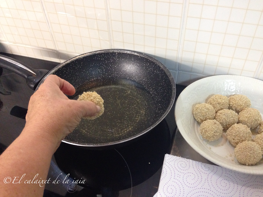 Con éstas cantidades me han salido 30 albóndigas de buen tamaño. Podemos acompañarlas con la ajonesa de azahar en un cuenco