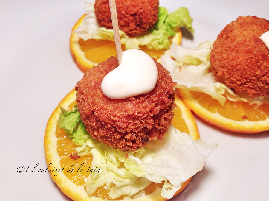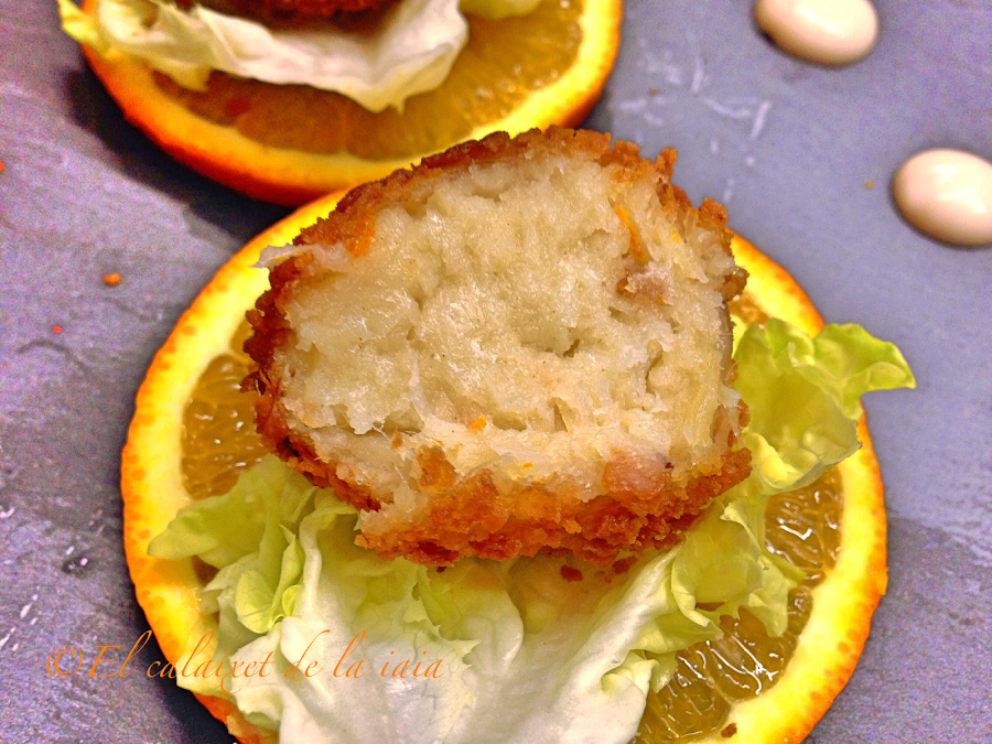 Mandonguilles dabaetxo i taronja amb allioli datzar.