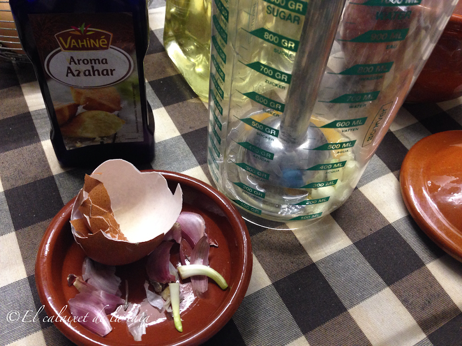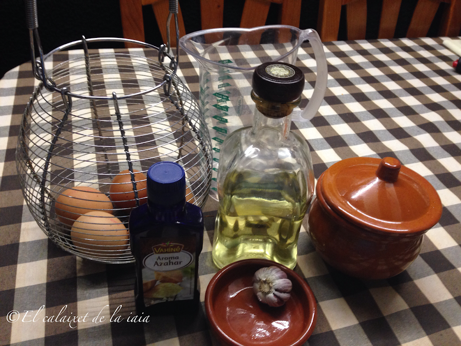 y ya está lista nuestra ajonesa de azahar, si no os gusta el ajo, podéis suprimirlo perfectamente y queda una mayonesa muy suave con sabor a naranja que da un toque fabuloso a éstas albóndigas. Reservamos en el frigo.