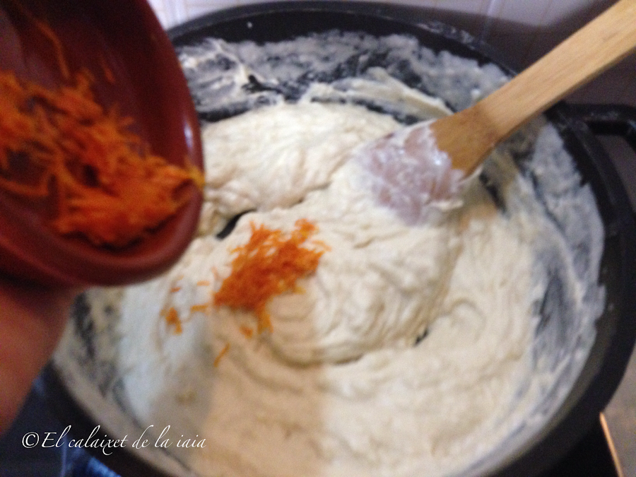 Sin dejar de remover la masa, incorporaremos la ralladura de una naranja