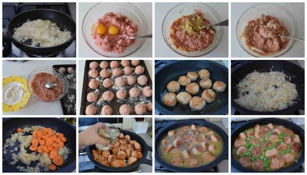 En los 10 últimos minutos añadimos los guisante y dejamos que se haga el conjunto hasta que la carne este tierna, podemos pinchar las albóndigas para comprobar que están blanditas.