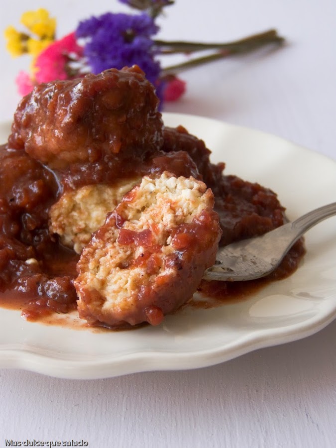 Antes de incorporar la albondigas a la salsa, se puede pasar por la batidora sí no os gusta encontraros tropezones.