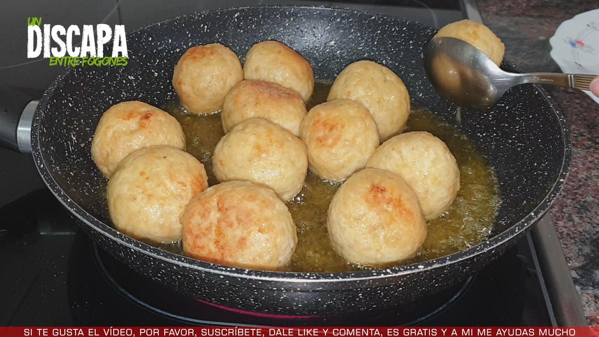 10Cuando ya tenemos todas las albóndigas enharinadas, ponemos un buen chorro de aceite en una sartén a calentar, y cuando el aceite esté caliente vamos poniendo las albóndigas. Dejaremos que se vayan dorando a fuego medio. Y cuando ya han cogido un bonito color dorado, las retiramos a un plato con papel absorbente para que absorba el exceso de aceite.