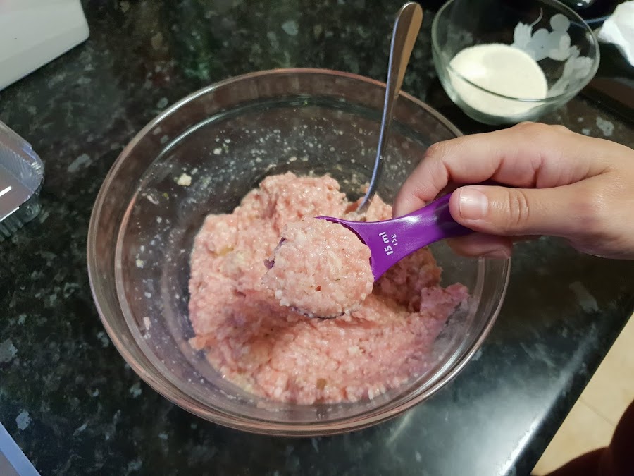 Mi truco para que todas las albóndigas sean iguales, es utilizar una cuchara medidora y engrasarla con aceite, de esta forma siempre coges la misma cantidad de carne y no se queda pegada.