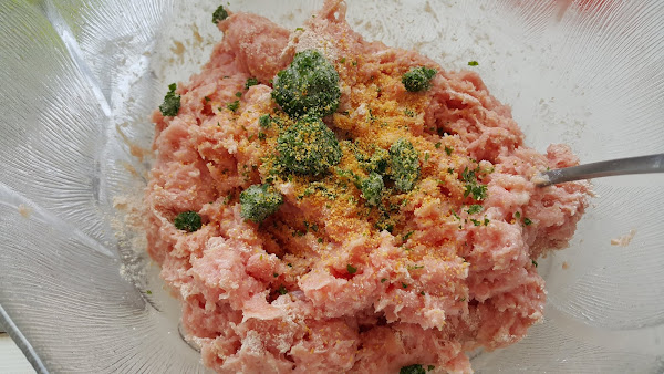 Añadimos el ajo en polvo, pimienta recién molida y perejil al gusto. Mezclamos bien.
