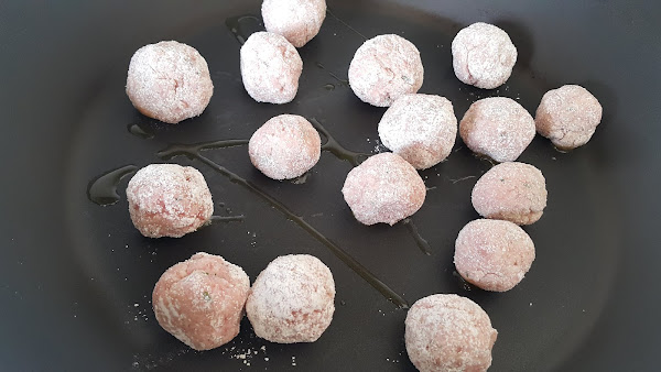 En una sartén con muy poco aceite sellamos las albóndigas. Es como si las hiciéramos a la plancha y reservamos.