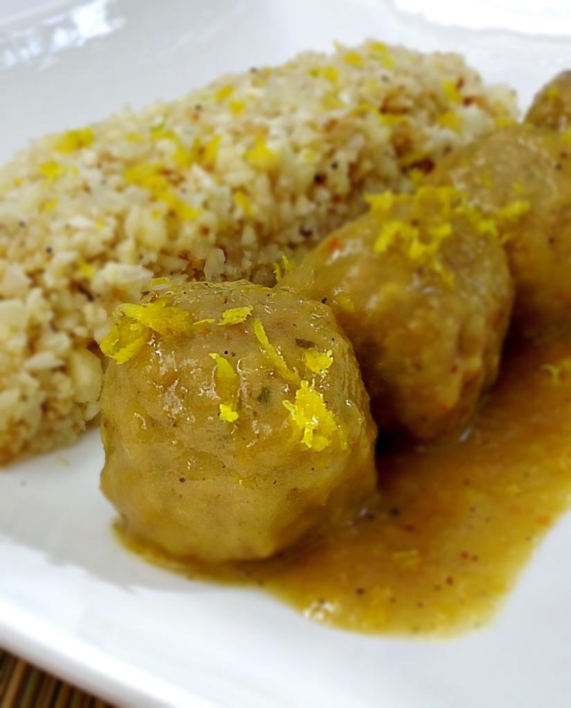 Albóndigas de soja a la naranja con cous-cous de coliflor