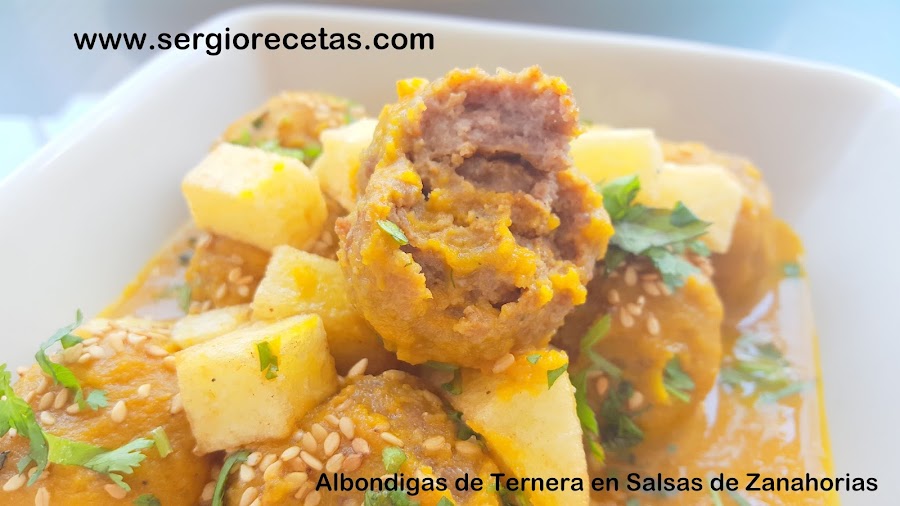 Que ricas y que socorridas son las Albóndigas y si encima son con una deliciosa Salsa de Zanahorias con un toque de sésamo y jenjibre el resultado es un espectacular plato que nos sirve para una tapa, un aperitivo o un plato principal y que, por el mismo esfuerzo, damos de comer a todos los que se nos presenten en casa, que por estas fechas estivales, suele ocurrir mucho más de lo que os imagináis, jeje. No te pierdas ni un segundo más esta estupenda receta que es muy fácil de hacer.