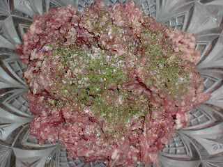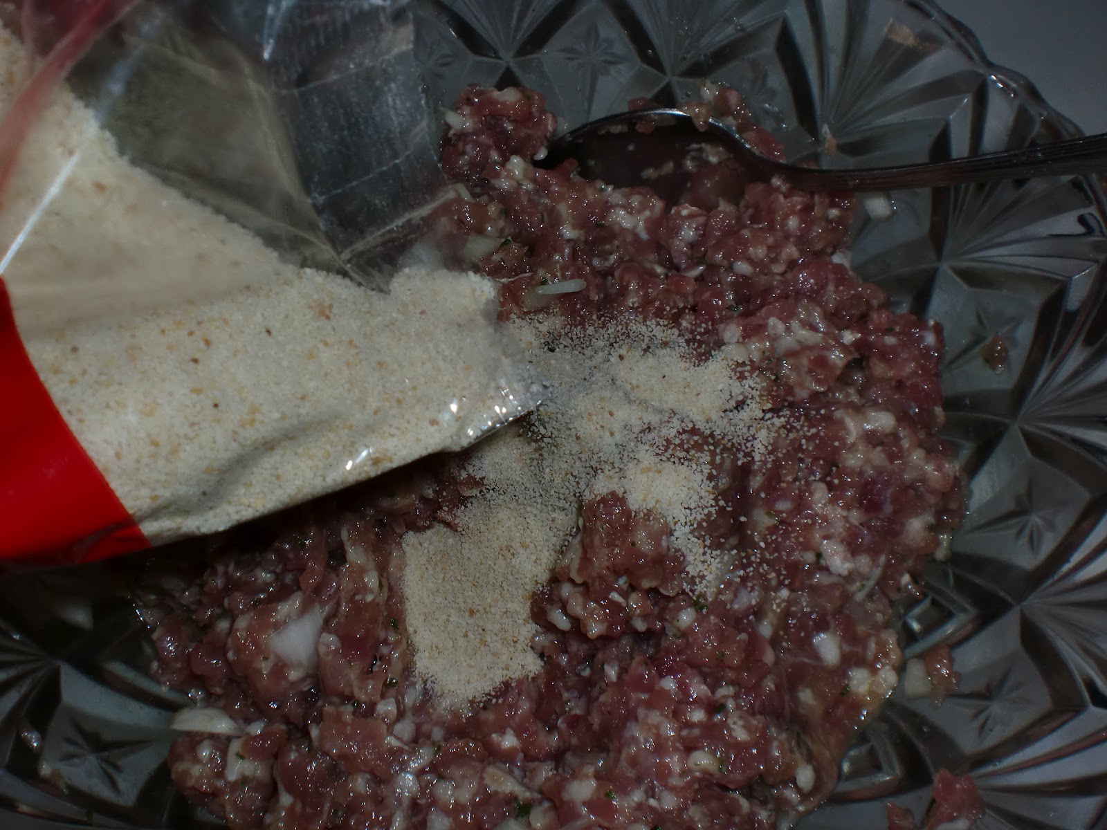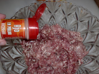 pon la carne en un bol y añade el aja , tengo que decir que suelo usar ajo fresco pero no tenia y usé este