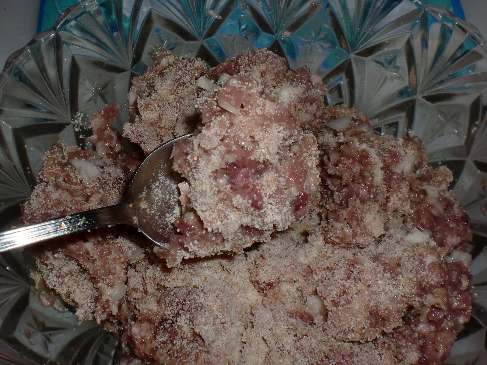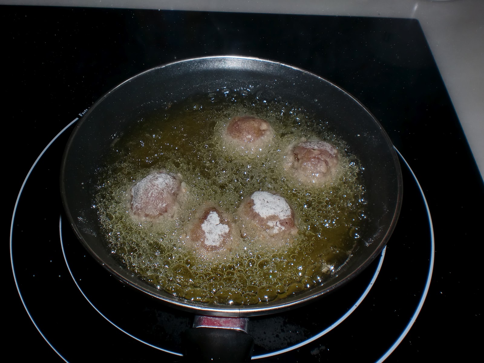 Carne picada de Ternera,aceite de oliva, cebolla,ajo,huevos, perejil ,pan rallado y harina.