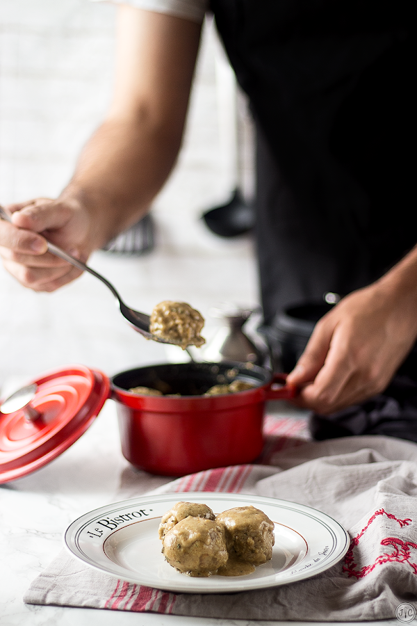 Hay recetas de las que se enamora uno a simple vista. Eso me pasó a mí con estas albóndigas en salsa de almendra que vi en el blog de mi amiga Miriam, El Invitado de Invierno. Una receta tradicional con un toque diferente que las hace súper atractivas. Las albóndigas son uno de mis platos favoritos y soy incapaz de no pedirlas en un restaurante... ¡y estas caseras son la bomba!
