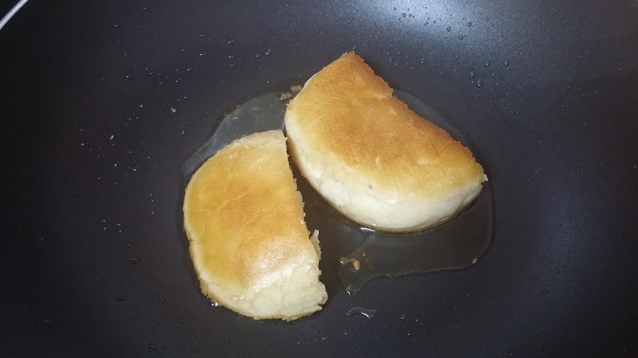 Una vez listos, reservamos. En el mismo aceite freímos el pan.