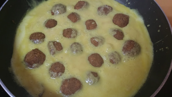 Dejamos cocer unos minutos y añadimos las albóndigas. Dejamos cocer unos 10 minutos y si es necesario rectificamos de sal.