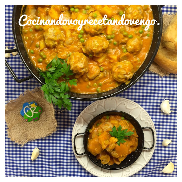 Hola a tod@s!! Las albóndigas suele ser un plato muy socorrido que gusta a toda la familia y especialmente a los niños. Se cocinan muy fácil y el resultado es un plato tradicional, económico y completo. En esta ocasión os traigo una de las más tradicionales, esta salsa es la que solían hacer todas nuestras abuelas, con mucha verdura y un sabor a casero irresistible. En mi casa gusta muchisimo ya que quedan muy jugosas y el sabor muy suave, yo diría delicioso ;) La salsa está triturada con todas las verduras y queda espesita, he dejado los guisantes, las patatas y los champiñones junto con las albóndigas para conseguir un plato completo con guarnición y que las pequeñas de la casa no vean más que las verduras que les gusta ;). El toque del vino os lo recomiendo, puede hacerse también con vino blanco, pero el vino dulce de Málaga le da un toque inmejorable ;) os recomiendo este sencillo plato con un resultado extraordinario que os cautivará. Ideal para elaborar con antelación porque al día siguiente estará igual de rico o mejor :D Con thermomix, es muy fácil hacer las albóndigas sin fritos, pero también os indico como de forma tradicional yo las hago para eliminar los fritos y quedan tremendamente deliciosas y con muchas menos calorías ;) y eliminando un paso con lo que hacemos también más fácil y económica la receta!! Quedáis avisados que estas albóndigas os cautivaran y que seguro la cocinareis con frecuencia.