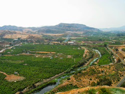 Huertas salpicadas de casas de labranza y caseríos, huertas que cubren el fondo del valle y trepan en acequias por cabeceros y pequeñas colinas. Huertas, en fin, de un paisaje vivo que lucha entre el ser y el haber sido.