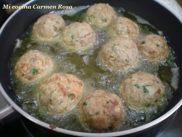 Freir en aceite de oliva, que estén doraditas y tomen color por todas partes.