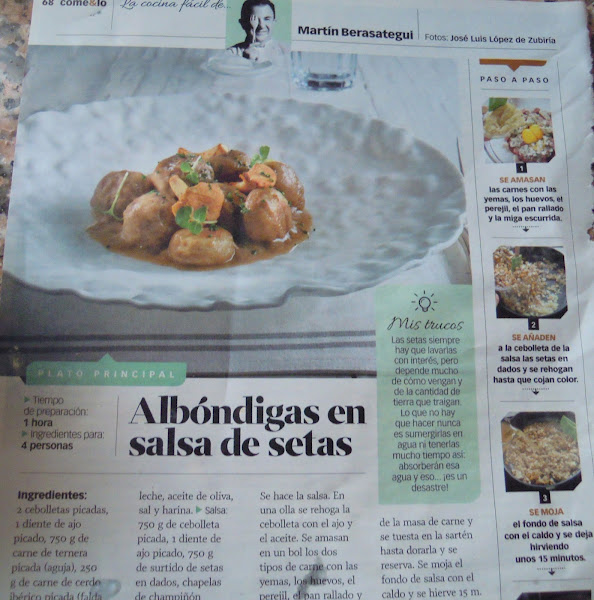 Desde siempre, cuando veo una receta en alguna revista que me gusta, la recorto y me la guardo....esta salió en una de esas revistas que van con los periódicos los domingos. En la última página siempre sale una receta de Martín, se llama La cocina fácil de Martín Berasategui.....ya tengo varias guardadas!!!