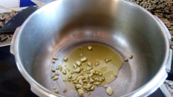 En una olla pon el aceite y el ajo picado. Sofríe.?