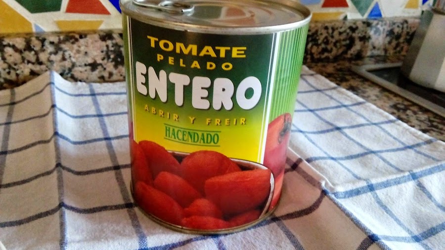 Agrega el tomate entero (al cual previamente le has sacado el zumo) y déjalo freír. Tienes que ir chafándolo (moliéndolo) con el tenedor hasta deshacerloal a gusto y azúcar para sacar la acidez del tomate