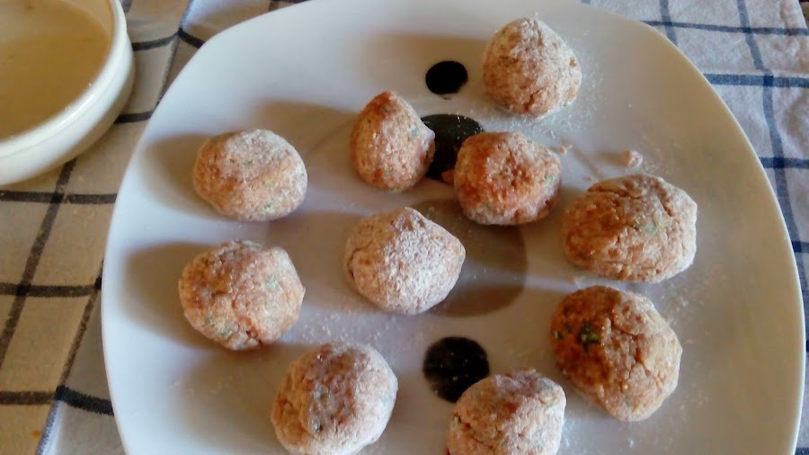 Una vez tengas todo mezclado, hacer bolitas y pasarlas por harina.
