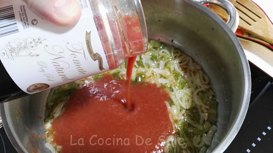 He utilizado para mi receta tomate natural Rey Raf, uno de sus exquisitos productos gourmet y que es perfecto para realizar un buen refrito.