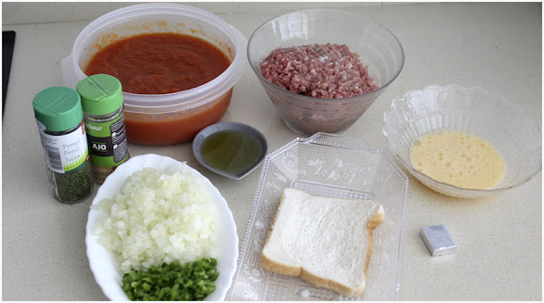 1.-Mezclamos la carne picada con el huevo, la rebanada de pan mojada en leche, la pastilla de caldo desmenuzada, el perejil picado y el ajo al gusto. Damos forma a las albóndigas.