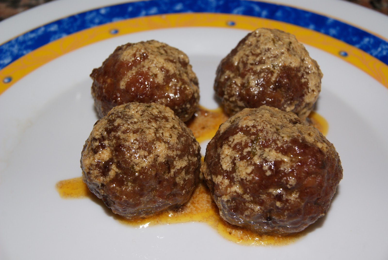 Primero prepararemos la carne: Picamos el tocino lo más picadito posible y dos dientes de ajo. Mezclamos la carne con el ajo, el tocino, el huevo y el pan rallado y formamos bolitas de un tamaño mediano. Las rebozamos en harina y las freímos en aceite muy caliente.