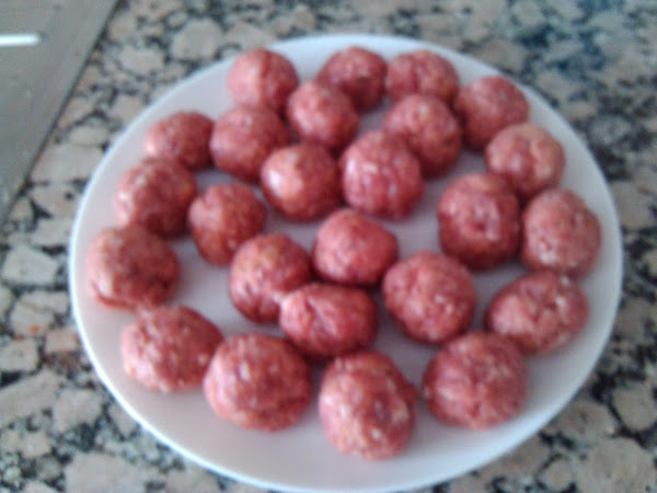 2.Una vez que tenemos nuestra carne picada preparada nos disponemos ha hacer nuestras albóndigas.El tamaño de las mismas es muy relativo yo aconsejo hacerlas de un tamaño pequeño así se cocinan bastante mejor en la salsa.Suelen salir entre 20 y 25 albóndigas.