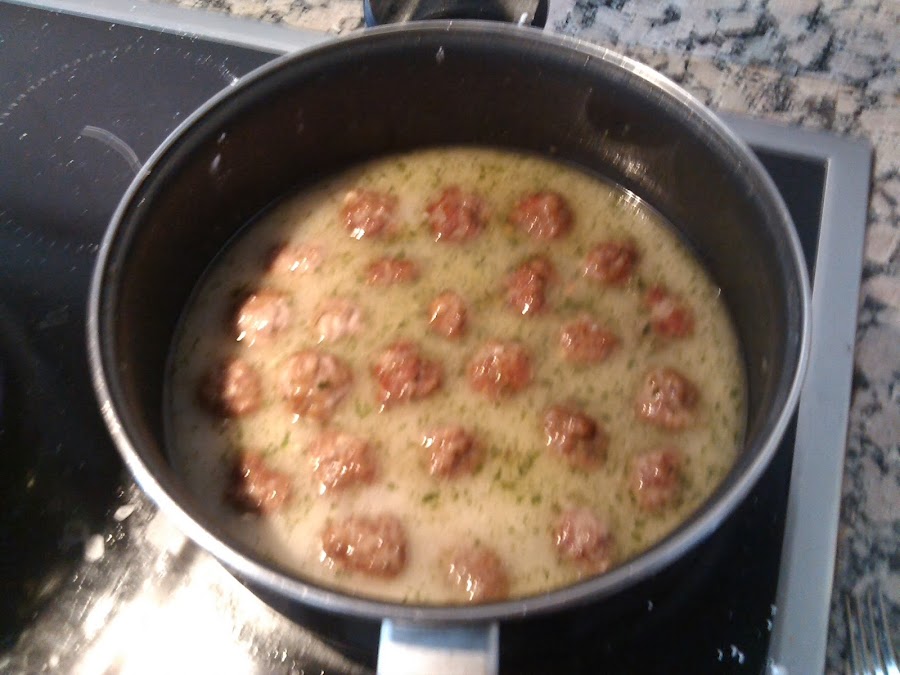 6.Añadimos las albóndigas y cocinamos hasta que la salsa tenga la testura que deseamos.